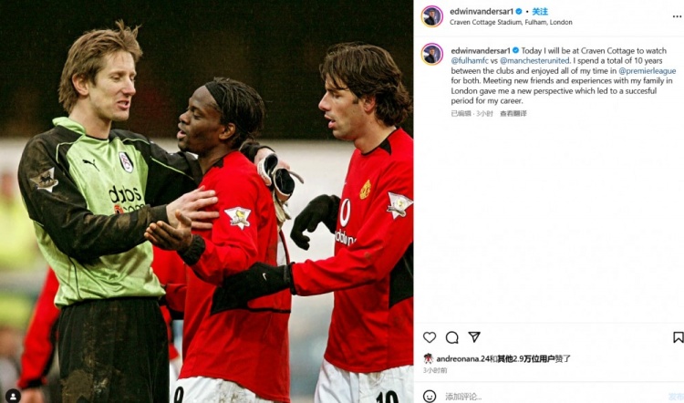 范德薩:“今天,我將前往克拉文農(nóng)場觀看富勒姆vs曼聯(lián)比賽,我在這兩家俱樂部總共效力了10年時(shí)光,我很享受在這兩家俱樂部度過的所有英超時(shí)光。和我的家人一起在倫敦結(jié)識(shí)新朋友的經(jīng)歷給了我一個(gè)新的視角,這也為我的職業(yè)生涯帶來了成功的時(shí)期。”