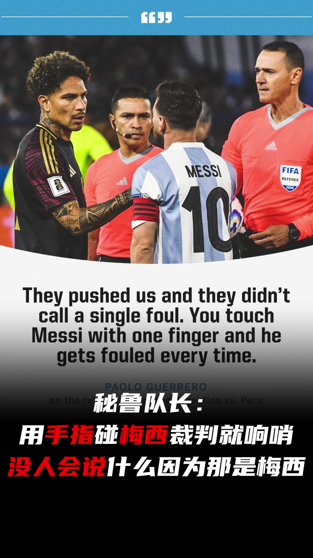 秘魯隊(duì)長(zhǎng):用手指碰梅西裁判就響哨,沒(méi)人會(huì)說(shuō)什么因?yàn)槭敲肺?/p>