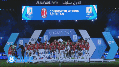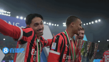 直播吧01月07日訊 意大利超級杯決賽,米蘭3-2逆轉絕殺國米奪冠。賽后,米蘭全隊上臺領取冠軍獎牌。