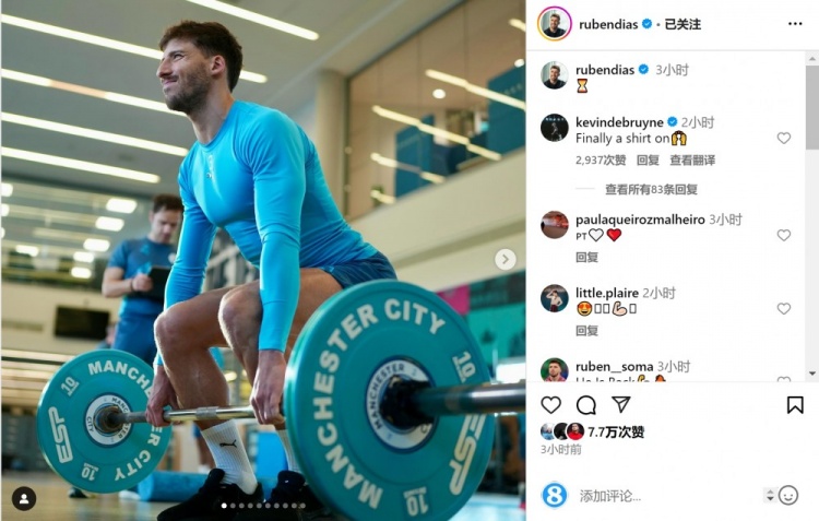 魯本-迪亞斯因傷缺席了近4場英超比賽,這位曼城中衛(wèi)在社交媒體上曬出在健身房內(nèi)進(jìn)行康復(fù)訓(xùn)練的照片,并配上沙漏的表情符號,暗示即將復(fù)出。