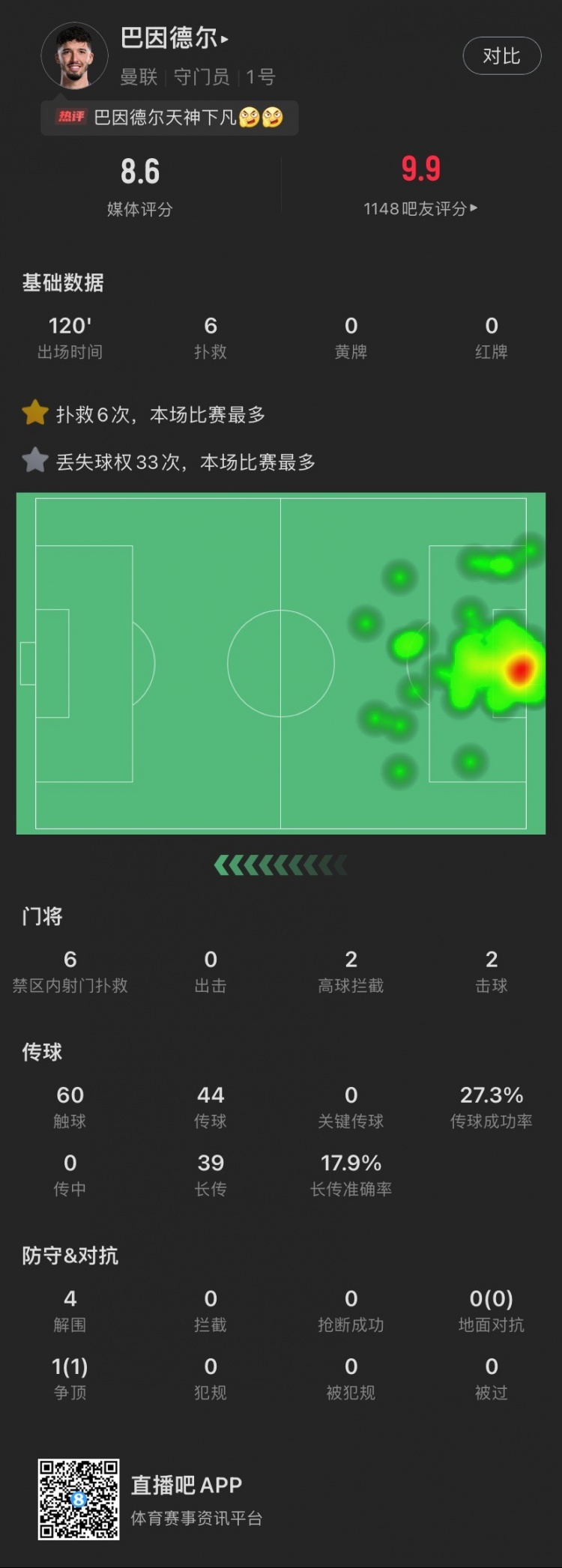 直播吧1月13日訊 在剛剛結(jié)束的足總杯第三輪比賽中,十人作戰(zhàn)曼聯(lián)通過(guò)點(diǎn)球大戰(zhàn)淘汰阿森納。本場(chǎng)比賽,巴因德?tīng)柊l(fā)揮神勇,全場(chǎng)6次撲救,常規(guī)時(shí)間中撲出厄德高點(diǎn)球,又在點(diǎn)球大戰(zhàn)中撲出哈弗茨點(diǎn)球。