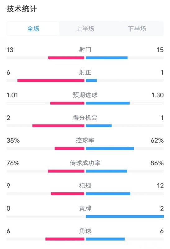全場比賽數(shù)據(jù)如下(切爾西在后):