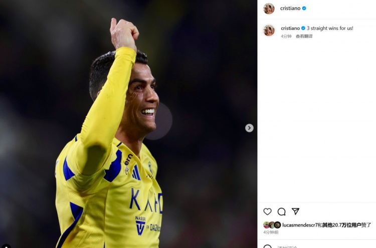 賽后,C羅更新社媒:我們?nèi)〉昧?連勝!