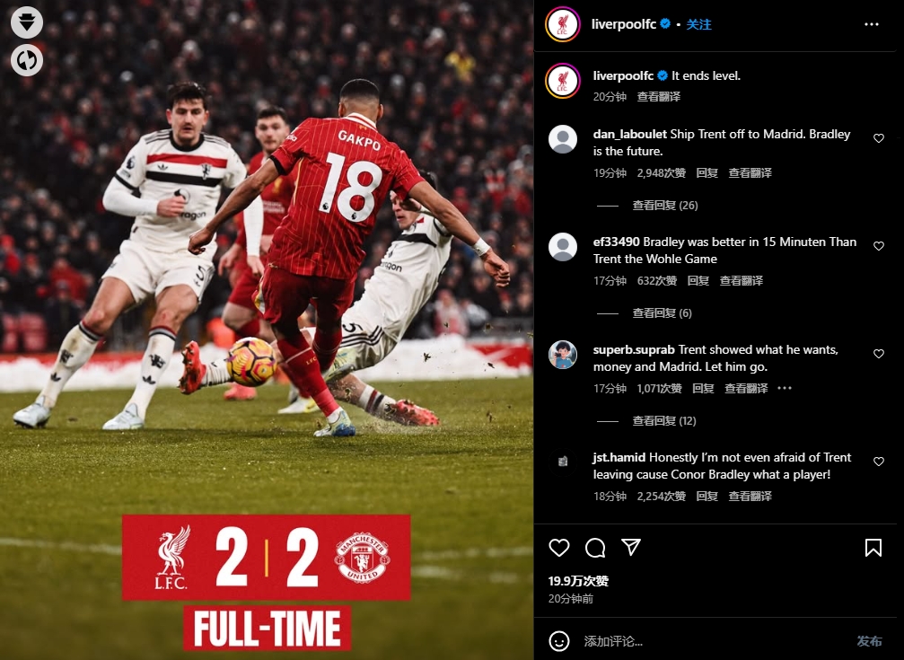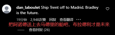 在利物浦官方社媒下,阿諾德也遭到了球迷的口誅筆伐。